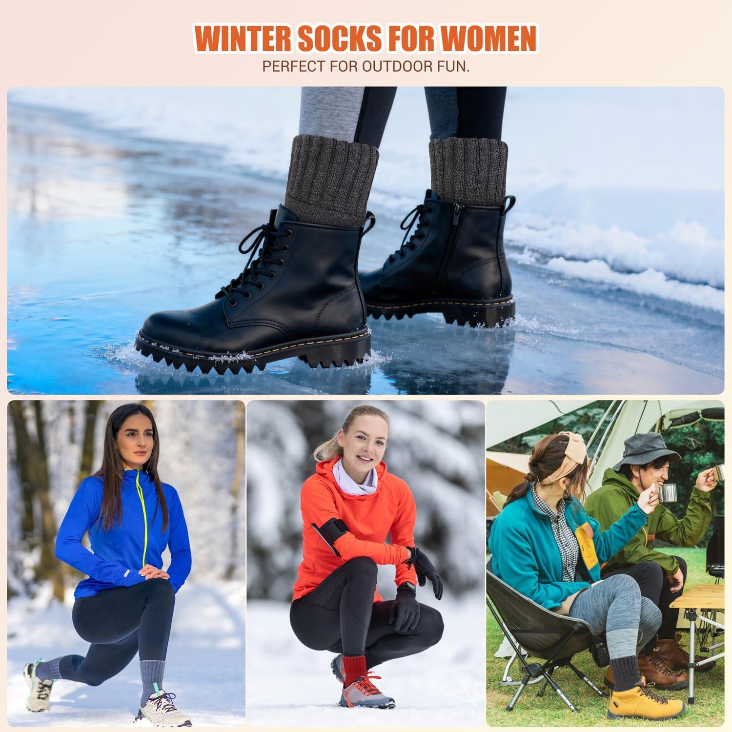 imageihuan Boot Socks for Women Cozy Fuzzy Thick Warm Crew Cabin Socks for Fall ampamp Winter Christmas Gift for Women 595Black Grey Beige3