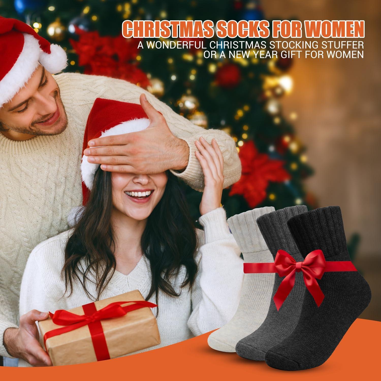 ihuan Boot Socks for Women, Cozy Fuzzy Thick Warm Crew Cabin Socks for Fall & Winter, Christmas Gift for Women (5-9.5)(Black Grey Beige-3)