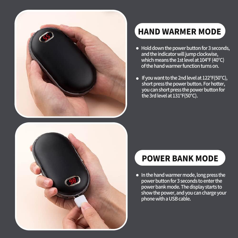 ihuan Hand Warmers Rechargeable, 10000mAh Portable Hand Wamers, Reusable Electric Hand Heater, Hot Hand Pocket Heater for Outdoor, Camping and Hiking
