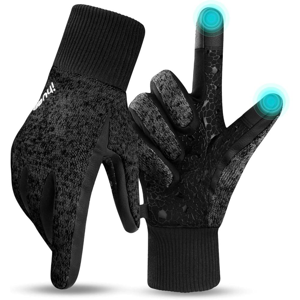 ihuan Winter Waterproof Gloves Cold Weather – Snow Ski Windproof for Men Women, Warm Touchscreen Thermal for Running Cycling(Dark Black)