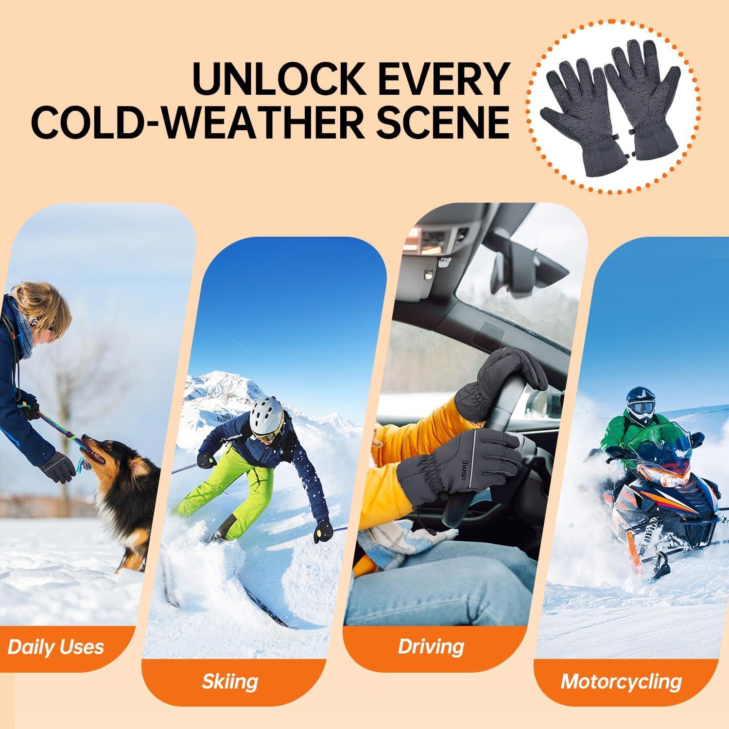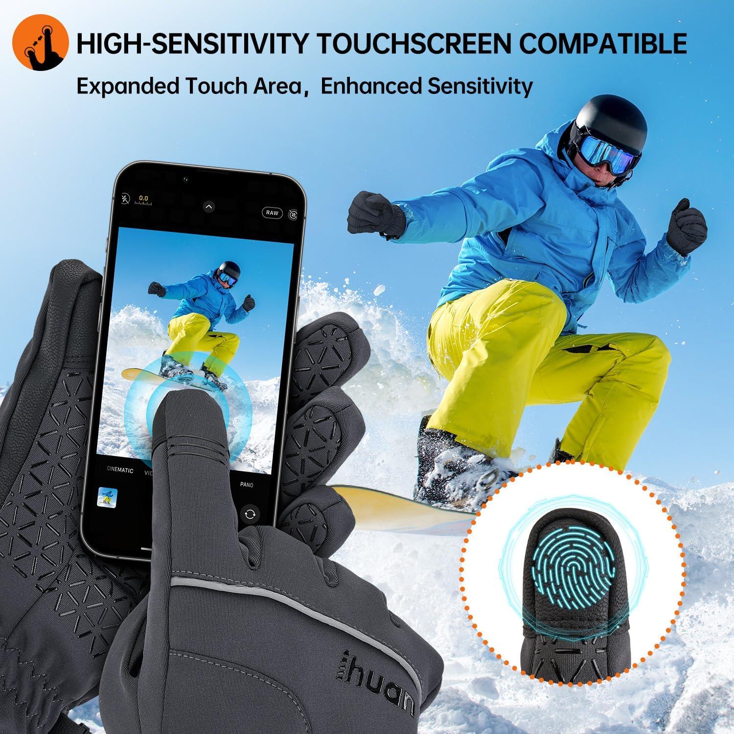 ihuan Winter Waterproof Skiing Gloves for Men & Women, Cold Weather Thermal Gloves with Touchscreen Fingers, Windproof, Snowboarding, Running, Cycling, Driving, Hiking, Motorcycle, Motorcycling(Black)
