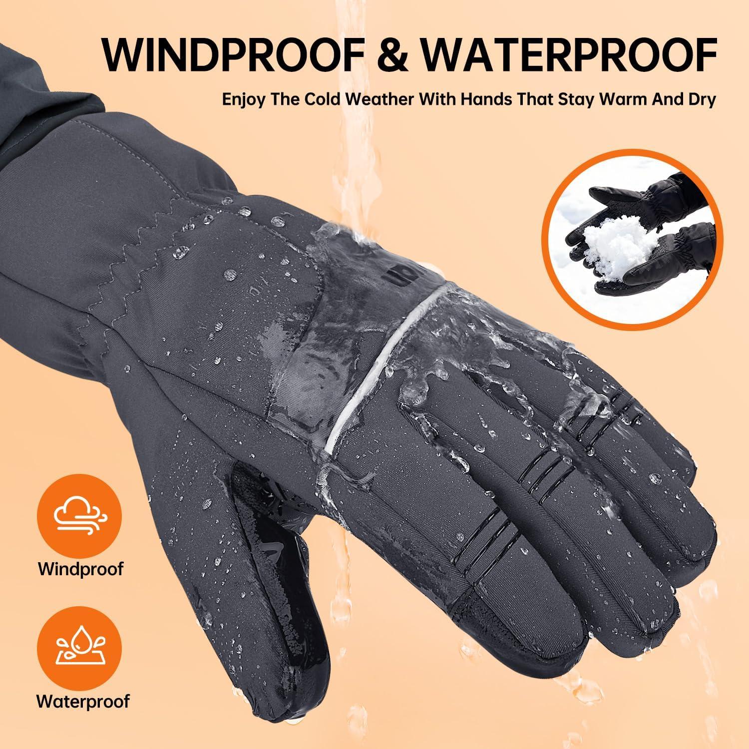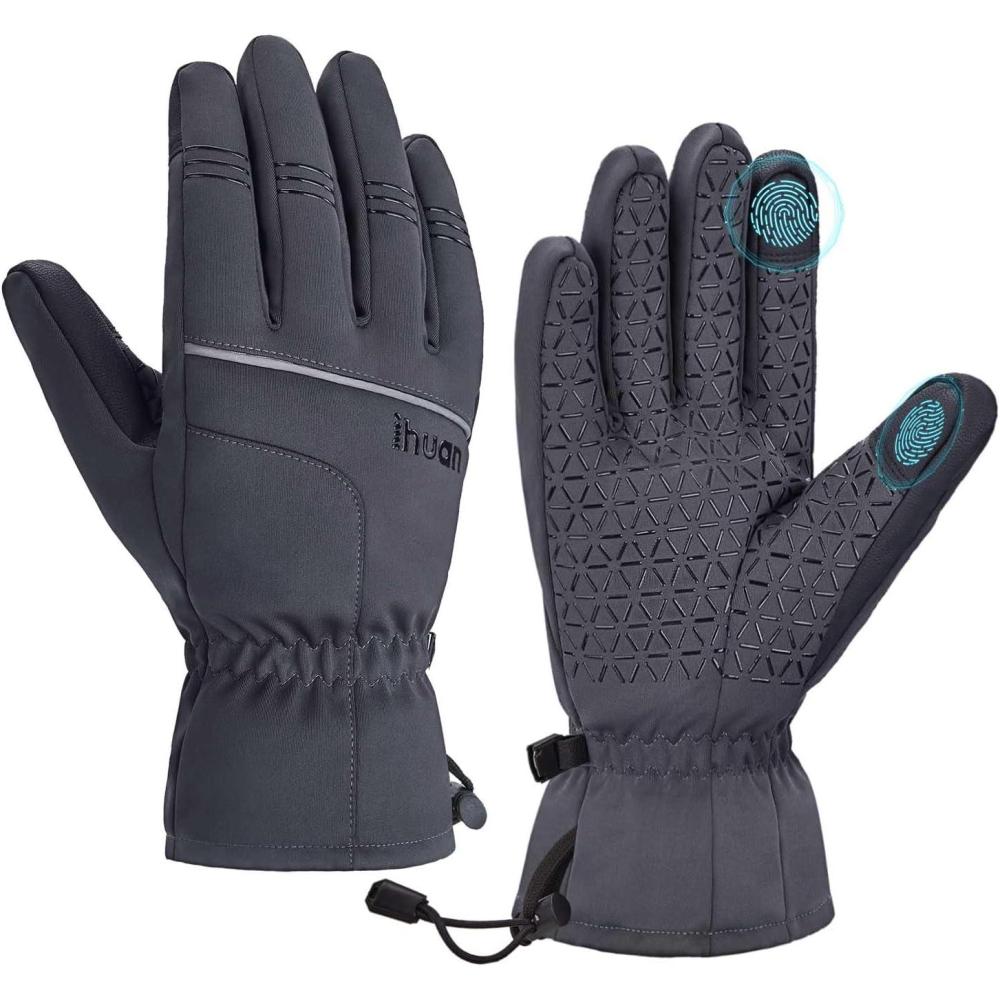 ihuan Winter Waterproof Skiing Gloves for Men & Women, Cold Weather Thermal Gloves with Touchscreen Fingers, Windproof, Snowboarding, Running, Cycling, Driving, Hiking, Motorcycle, Motorcycling(Grey)