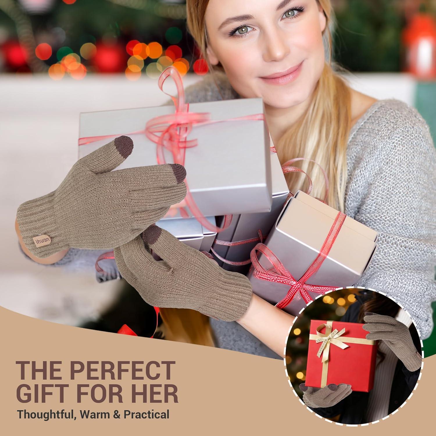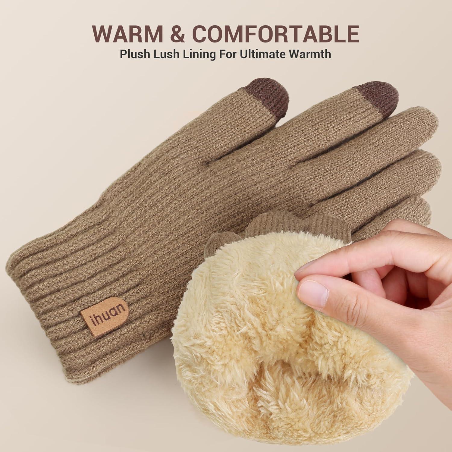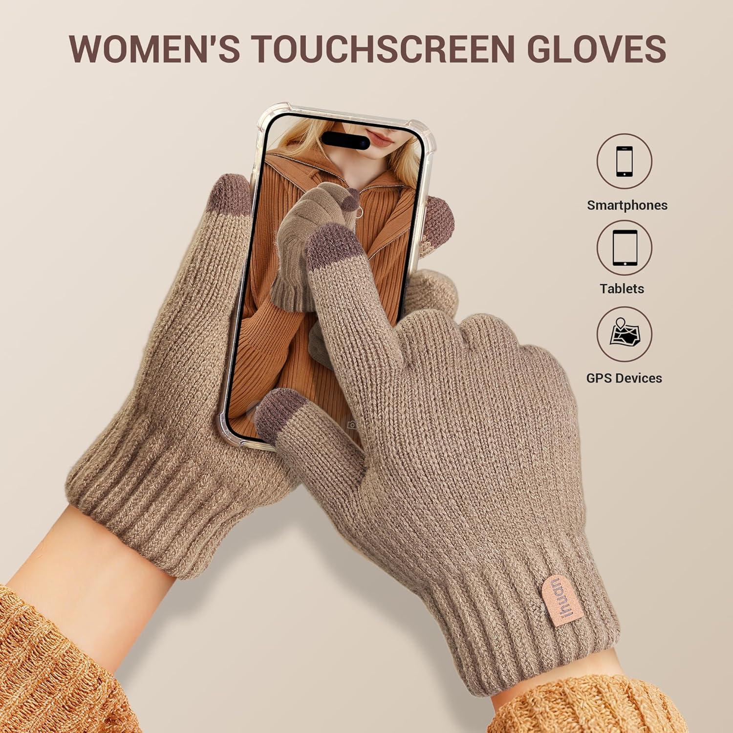 ihuan Women Winter Gloves for Cold Weather, Warm Touchscreen Driving Running Cycling, Thermal Knit Gloves with Fleece Lining(Khaki)